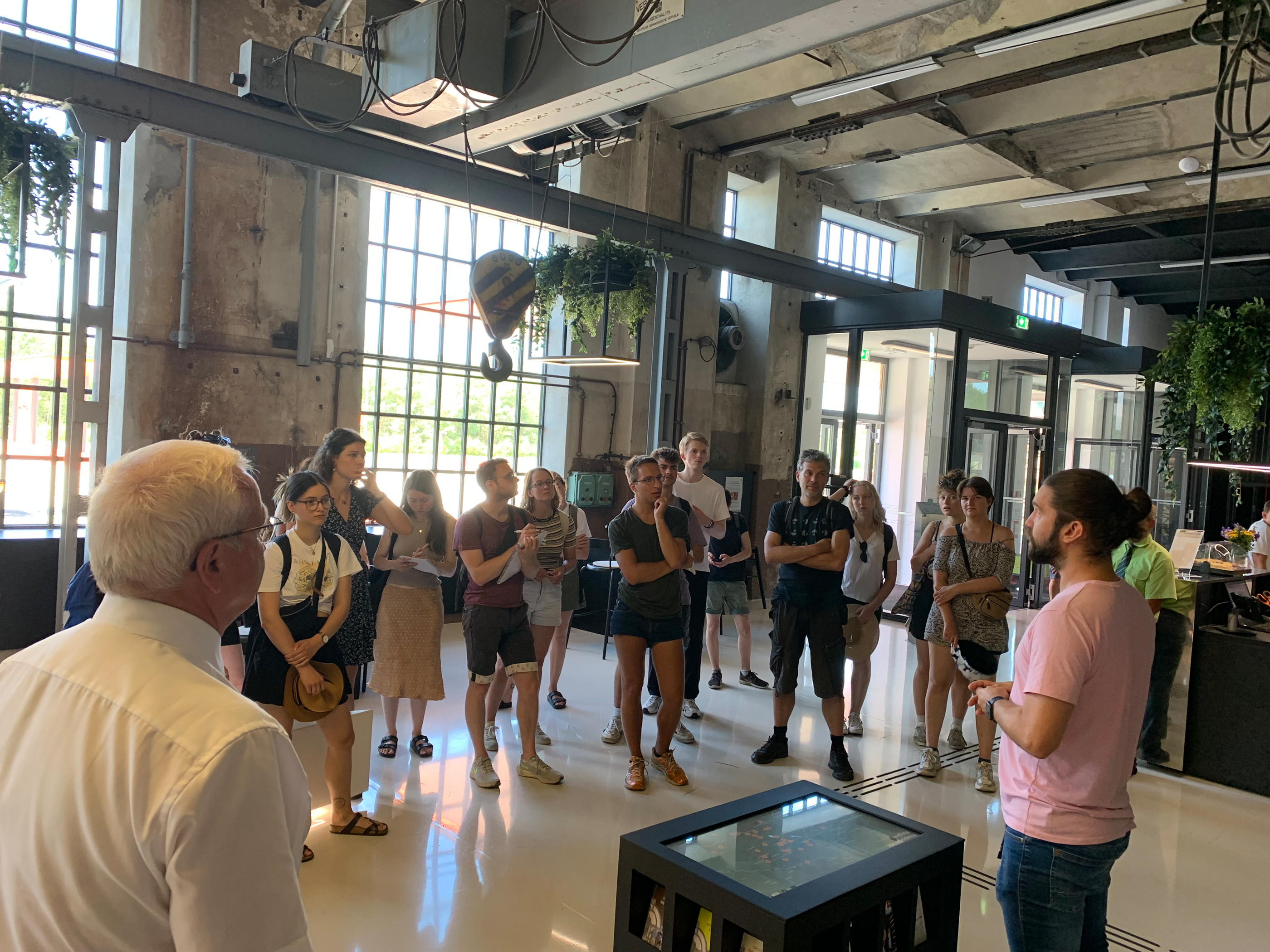 Um auf die komplexen Fragen konkrete Antworten zu liefern, hatte die Stadtverwaltung am Mittwoch, dem 3. August 2022 ein Besuchsprogramm vorbereitet, das theoretische Inhalte wie praktische Erlebnisse vermittelte. Oberbürgermeister Torsten Ruban-Zeh begleitete die Gruppe auf eine Tour durch die Stadt mit Halt an Bahnhof, Lausitztower, Albert-Schweitzer-Straße und Hufelandstraße. Im Anschluss wurde gemeinsam die Ausstellung in der ehemaligen Brikettfabrik und heutigen Energiefabrik Knappenrode besichtigt. Inmitten der Kulisse des sächsischen Industriedenkmals informierte Oberbürgermeister Torsten Ruban-Zeh über die Entwicklung von Stadt und Region.