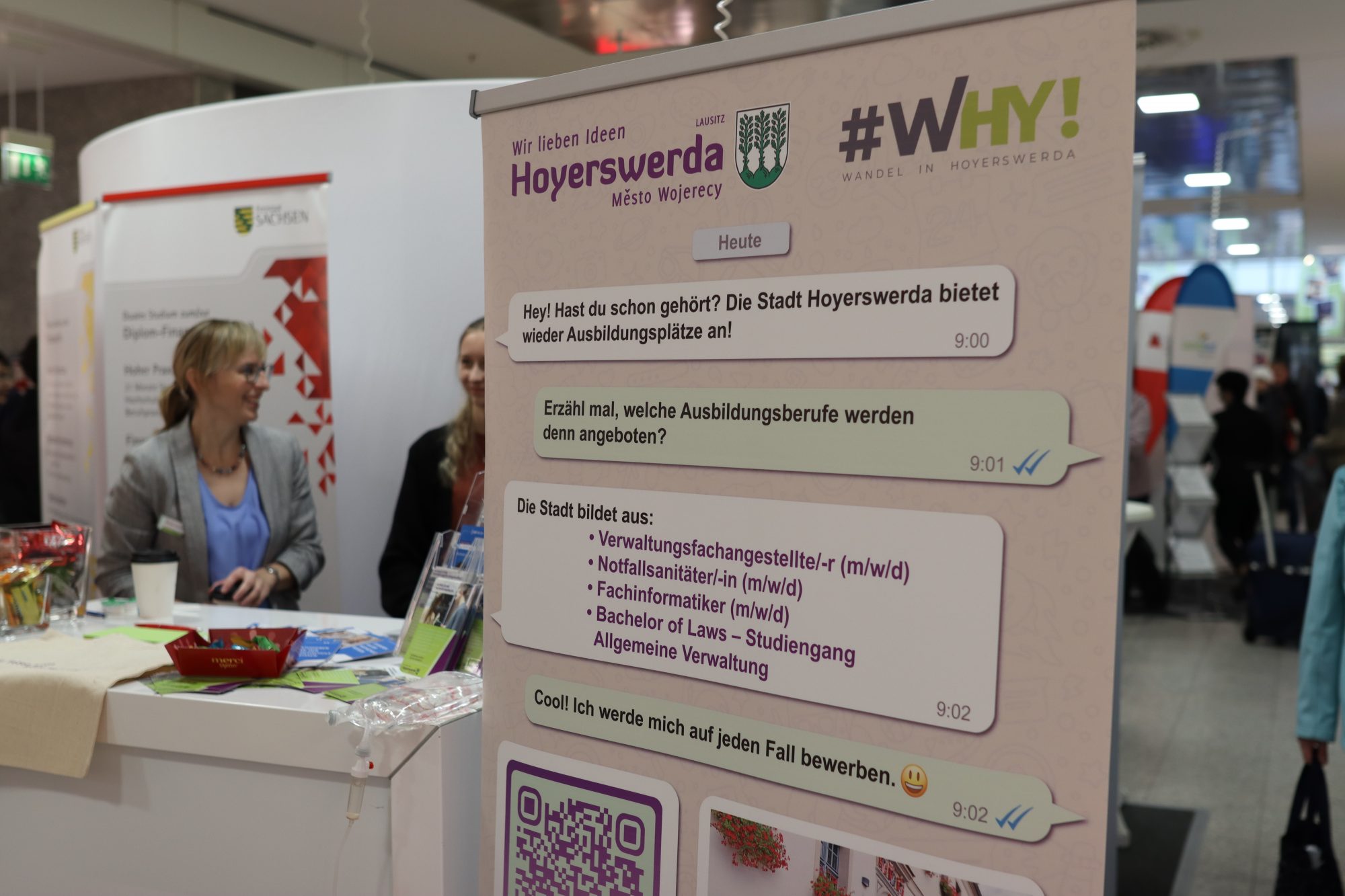 Großer Andrang herrschte Ende Oktober im Lausitz-Center. Bei der #WHY!-Karrieremesse stand vom 27.-28.10. alles im Zeichen der Lebens- und Berufsperspektiven in der Region. 24 Unternehmen präsentierten sich mit ihren Ausbildungs-, Weiterbildungs- und Jobangeboten. Parallel dazu gaben 18 Vereine Einblick in das Freizeit- und Kulturangebot in Hoyerswerda und Umgebung. Die vom Marketingverein organisierte Karrieremesse stand unter dem Motto „Freizeit. Karriere. Perspektiven.“ und lud ein, die Potenziale der Stadt kennenzulernen.