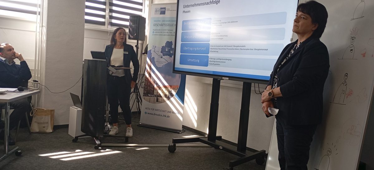 Ein weiterer wichtiger Programmpunkt war das Thema Unternehmensnachfolge. Katrin Joswig von der IHK Dresden und Christiane Gerlach von der HWK Dresden informierten über die Herausforderungen und Chancen bei der Übergabe eines Betriebs an die nächste Generation oder an externe Nachfolger. Zudem wurde das Projekt „SelbstständigLausitz“ durch Reno Rössel von der HWK Dresden vorgestellt. Dieses Projekt fungiert als Schnittstelle und Ergänzung zu den betriebswirtschaftlichen Beratungsangeboten der Handwerkskammer Dresden und unterstützt Unternehmer bei Fragen zur Unternehmensübergabe und Existenzgründung.