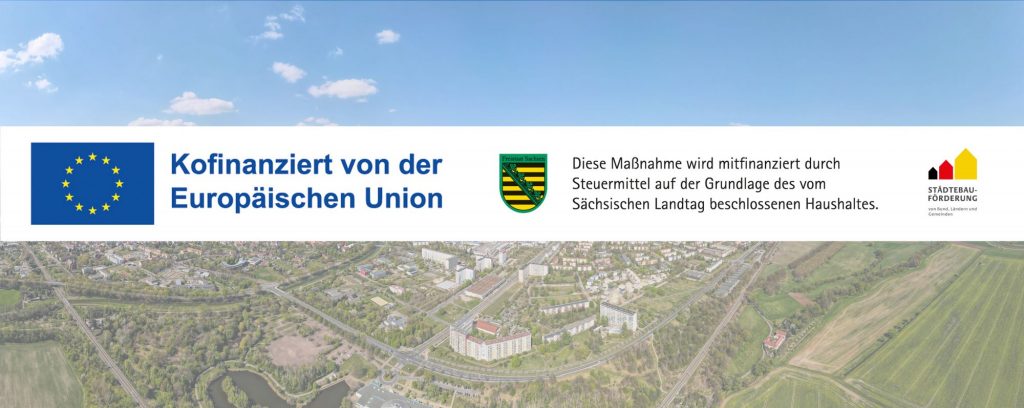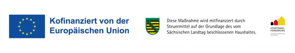 > 15 % Städtebauförderung: Der Freistaat Sachsen unterstützt die Projekte mit einem Anteil aus Mitteln der Städtebauförderung (speziell aus dem Programmteil Stadtumbau). Die Städtebauförderung ist eine gemeinsame Initiative von Bund und Ländern, um Städte bei der Bewältigung des wirtschaftlichen und demografischen Wandels zu unterstützen.